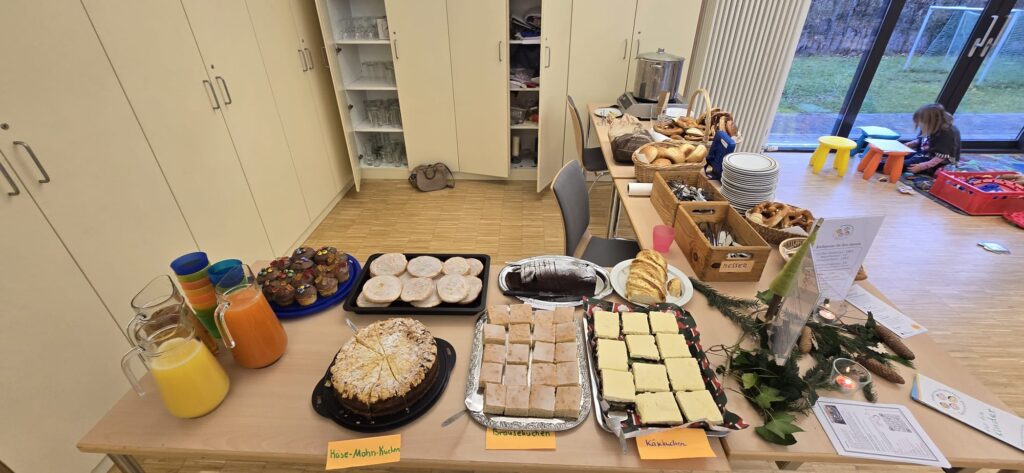 Am 14.12. fand im Anschluss an den von der Kolibrigruppe mitgestalteten Familiengottesdienst ein Kirchenkaffee statt. Der Förderverein konnte dank den leckeren Kuchenspenden der Eltern und mit Unterstützung der Bäckerei Hamma 175€ für die Zwecke des Kindergartens einnehmen.